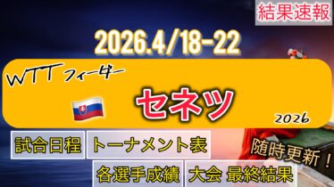 こんにちは、いまときです。 この記事では、WTTコンテンダーチュニス2026の結果速報をお伝えします。 大会期間は2026.3/24(火)〜3/29(日)。時差は8時間です。 随時更新していきますので、みなさん一緒に応援しましょう‼︎『がん...