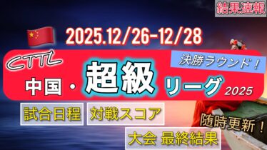 中国・超級リーグ 【結果速報‼︎】中国・卓球 超級リーグ2025(決勝ラウンド)【トーナメント表・日本人結果まとめ】 こんにちは、いまときです。 この記事では、『中国卓球スーパーリーグ2025(決勝ラウンド)』の結果速報をお伝えします。 大会期間は2025.12/26(金)〜12/28(日)です。時差は1時間です。 随時更新していきますので、みなさん一緒に... 2025.10.11 中国・超級リーグ結果速報‼︎結果速報‼︎【2025】超級リーグ2025