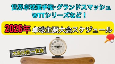 年間スケジュール【一覧表】 【卓球】2026年スケジュール【国際大会・国内大会】 こんにちは、いまときです。 この記事では、2026年に行われる卓球の主要大会のスケジュールをまとめます。 ※追加や変更があり次第、随時更新します。 (adsbygoogle = window.adsbygoogle || []).push(... 2025.10.10 年間スケジュール【一覧表】