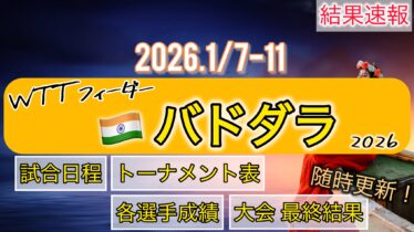 こんにちは、いまときです。 この記事では、WTTコンテンダーマスカット2026の結果速報をお伝えします。 大会期間は2026.1/19(月)〜1/24(土)。時差は5時間です。 随時更新していきますので、みなさん一緒に日本選手を応援しましょ...