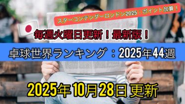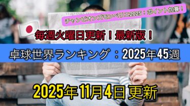 世界ランキング 【卓球】最新世界ランキング団体:2025年11月更新【#11】