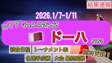 WTTチャンピオンズ 【結果速報‼︎】チャンピオンズドーハ2026【トーナメント表・日本人結果まとめ】