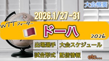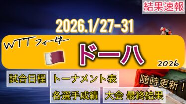 こんにちは、いまときです。 この記事では、WTTフィーダードーハ2026の結果速報をお伝えします。 大会期間は2026.1/27(火)〜1/31(土)。時差は6時間です。 随時更新していきますので、みなさん一緒に日本選手を応援しましょう‼︎...