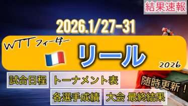 こんにちは、いまときです。 この記事では、WTTフィーダーリール2026の結果速報をお伝えします。 大会期間は2026.1/27(火)〜1/31(土)。時差は8時間です。 随時更新していきますので、みなさん一緒に日本選手を応援しましょう‼︎...
