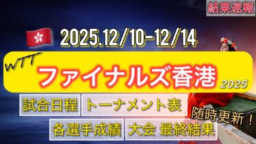 皆さんこんにちは、いまときです。 この記事では、『WTTファイナルズ香港2025』の結果速報をお伝えします。 大会期間は2025.12/10(水)〜12/14(日)です。時差は1時間です。 【大会日程】 決まり次第更新します 時差(1時間)...