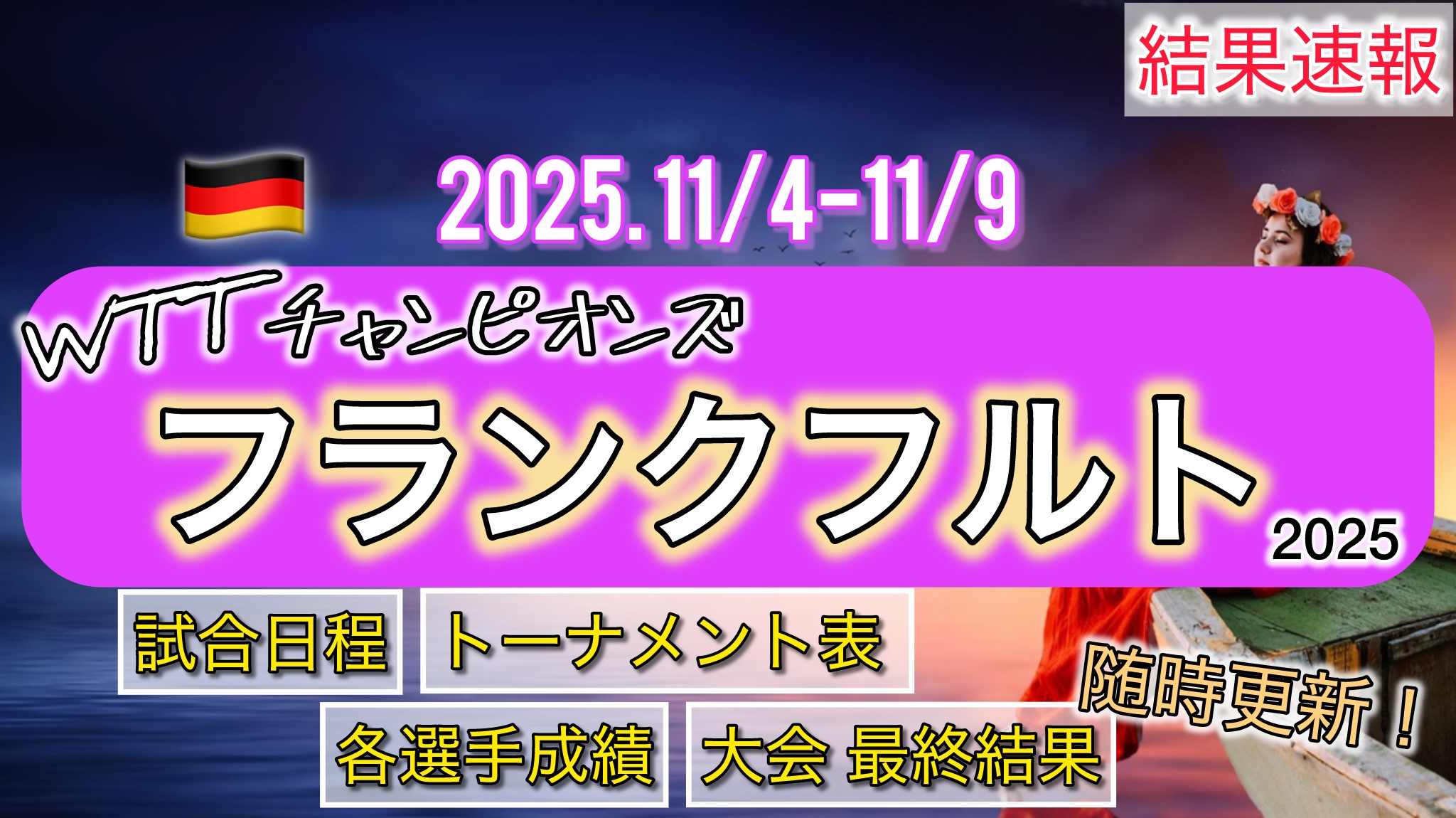 この記事では、WTTチャンピオンズフランクフルト2025の結果速報をお伝えします。