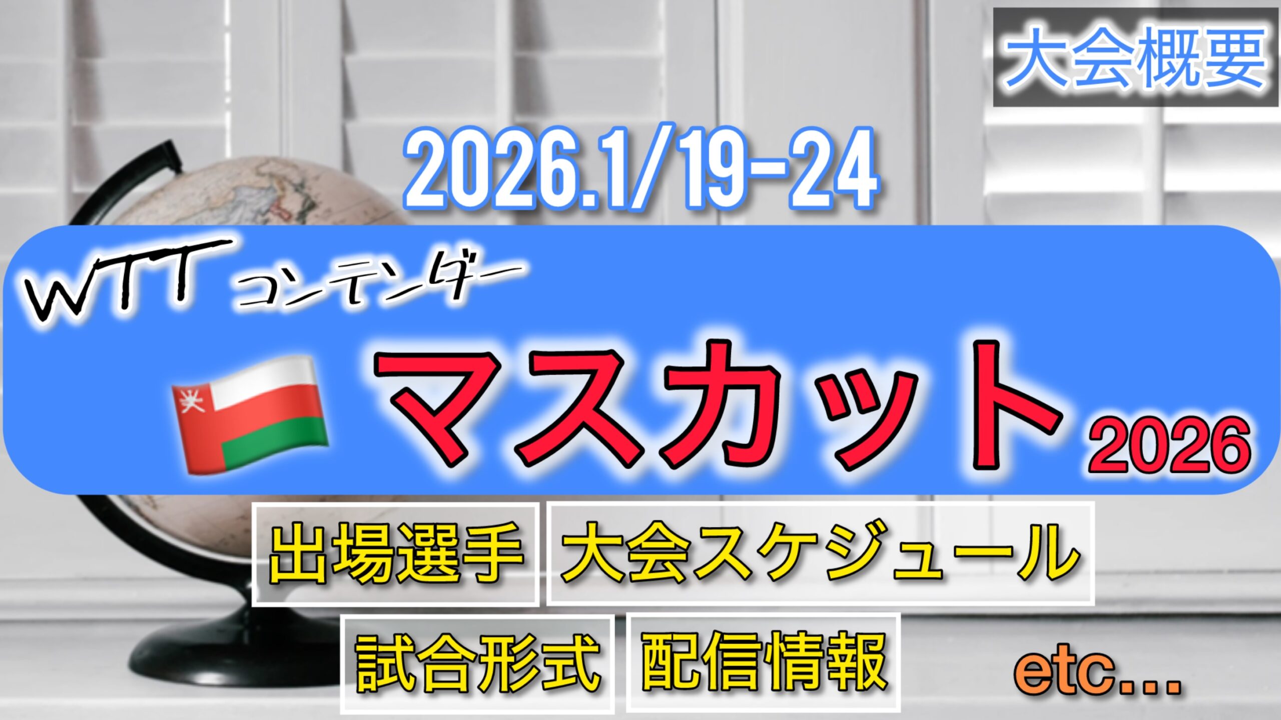 WTTコンテンダーマスカット2026が、2026.1/19(月)〜1/24(土)の日程で開催されます。