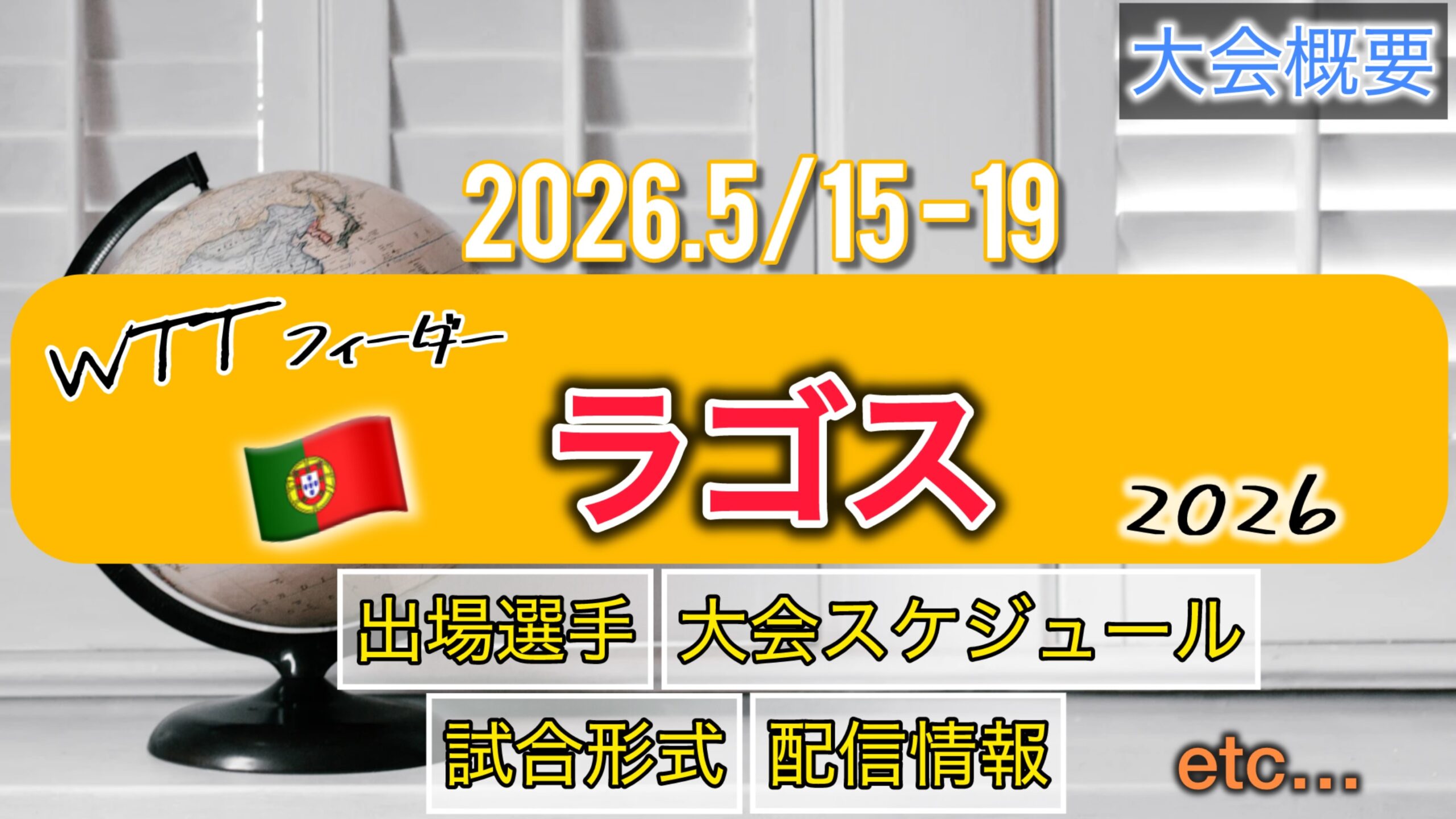 2026.5/15(金)〜5/19(火)の日程で『🇵🇹WTTフィーダーラゴス2026』が開催されます。