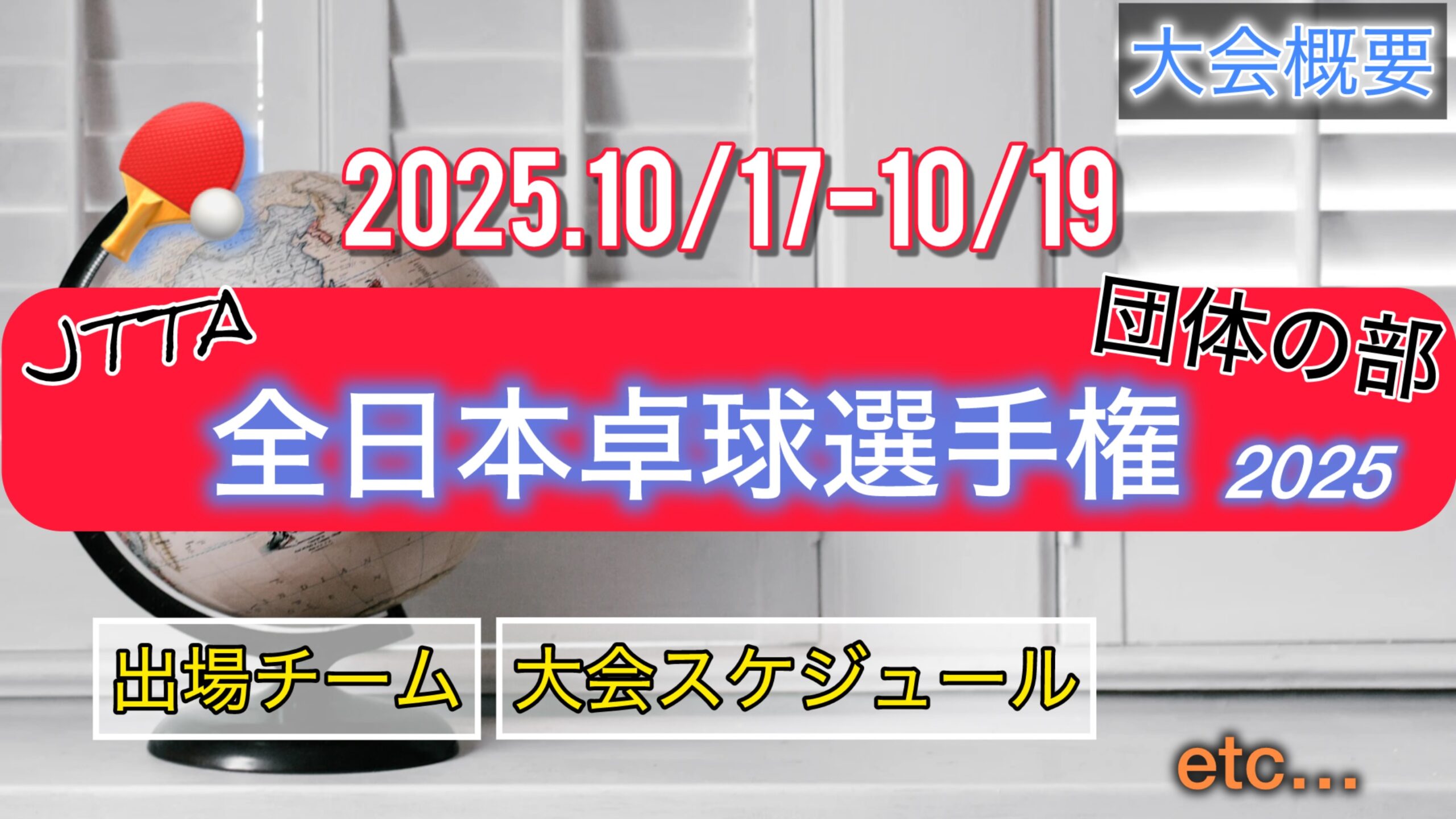 2025.10/17(金)〜10/19(日)の日程で『2025年全日本卓球選手権大会(団体の部)』が開催されます。