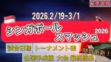2026.2/19(木)〜3/1(日)の日程で『シンガポールスマッシュ2026』が開催されます。