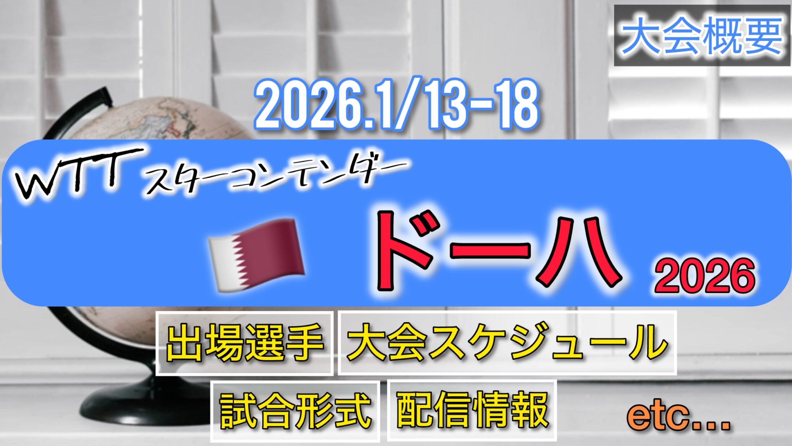 2026.1/13(火)〜1/18(日)の日程で『WTTスターコンテンダードーハ2026』が開催されます。