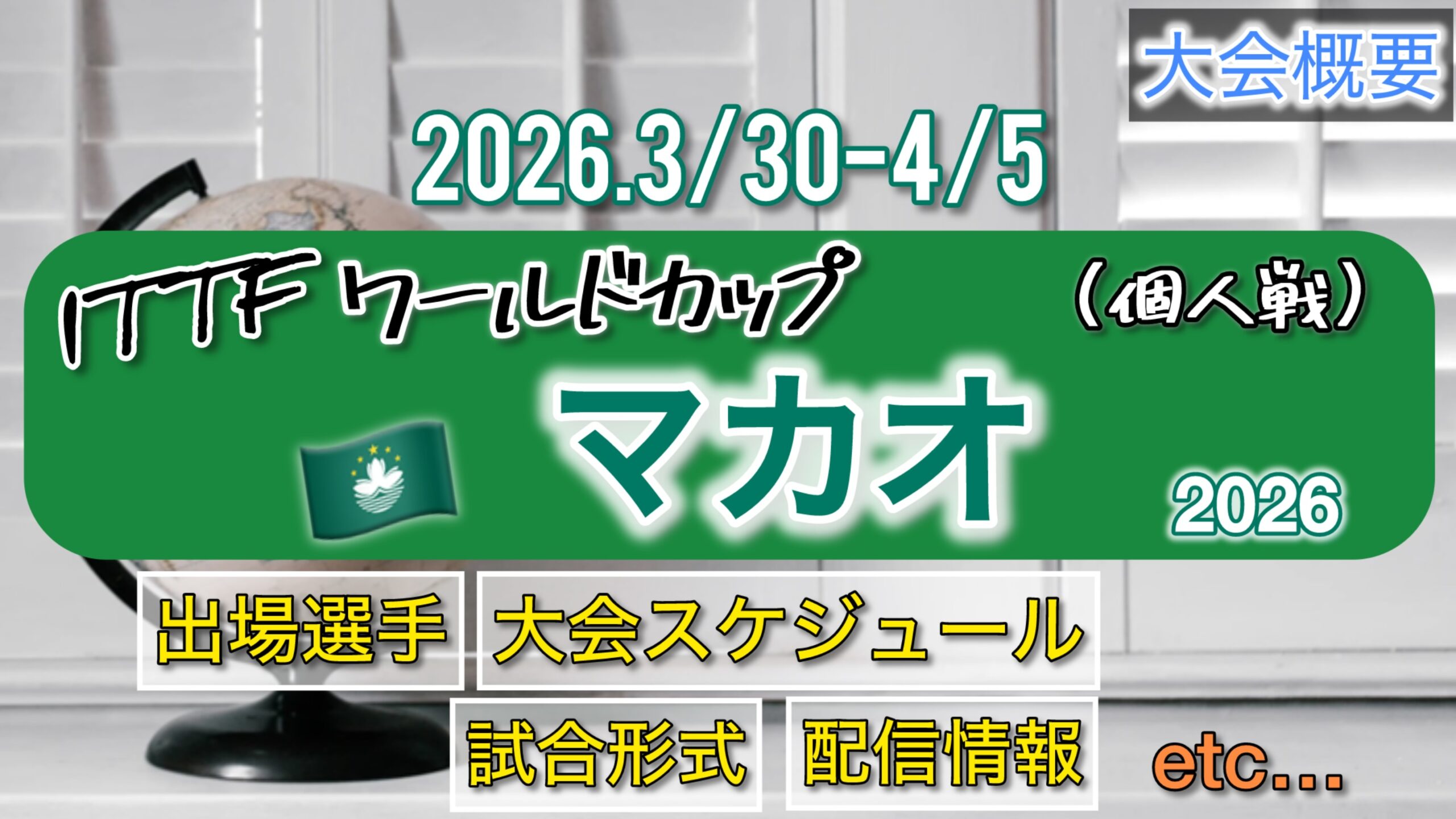 2026.3/30(月)〜4/5(日)の日程で『ITTF男女ワールドカップマカオ2026』が開催されます。