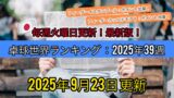 先週、2025年9月23日に更新された2025年第39週の最新世界ランキングは以下の記事をご覧ください。