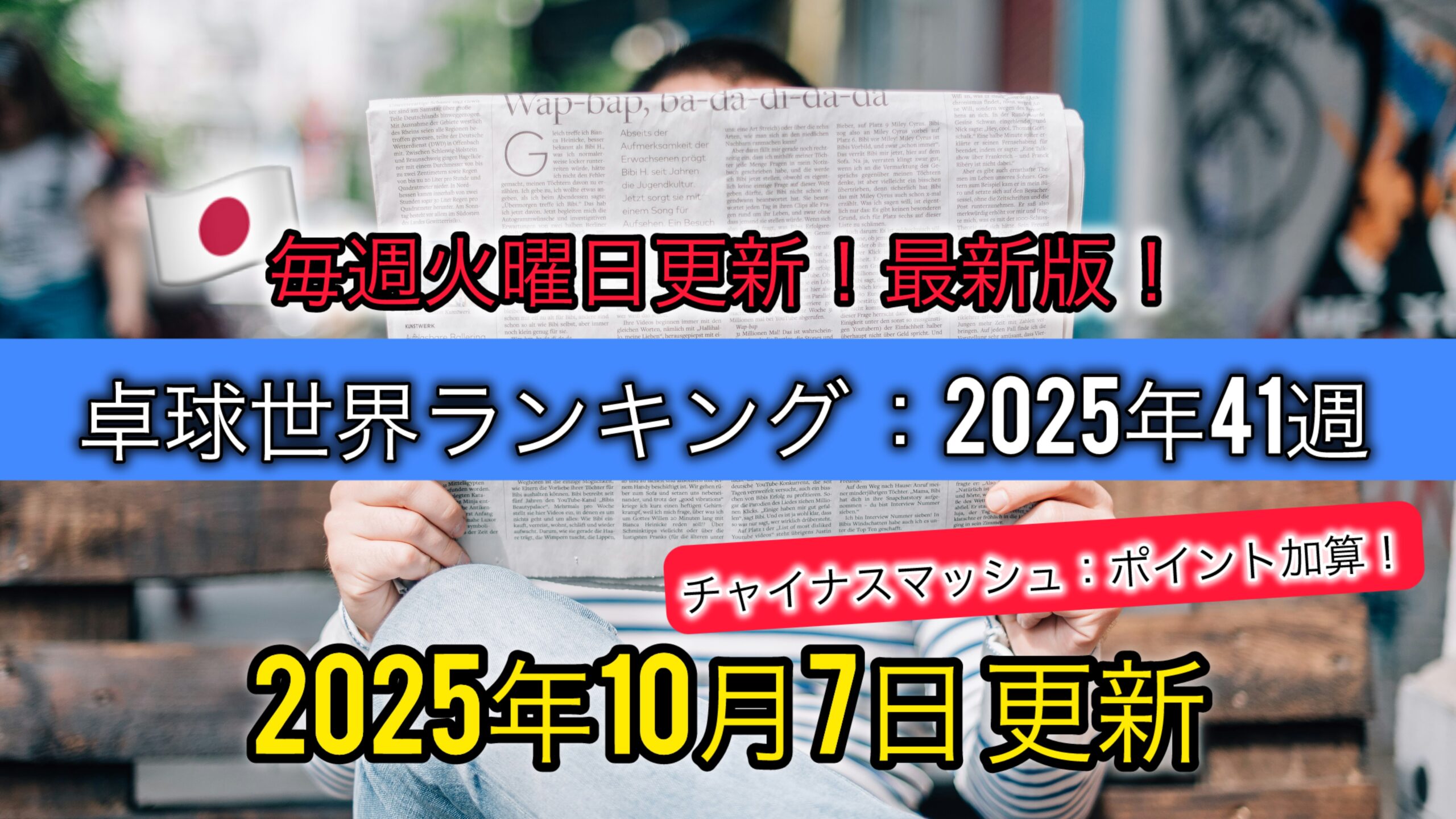 【卓球】最新世界ランキング:2025年10月7日更新【#41】